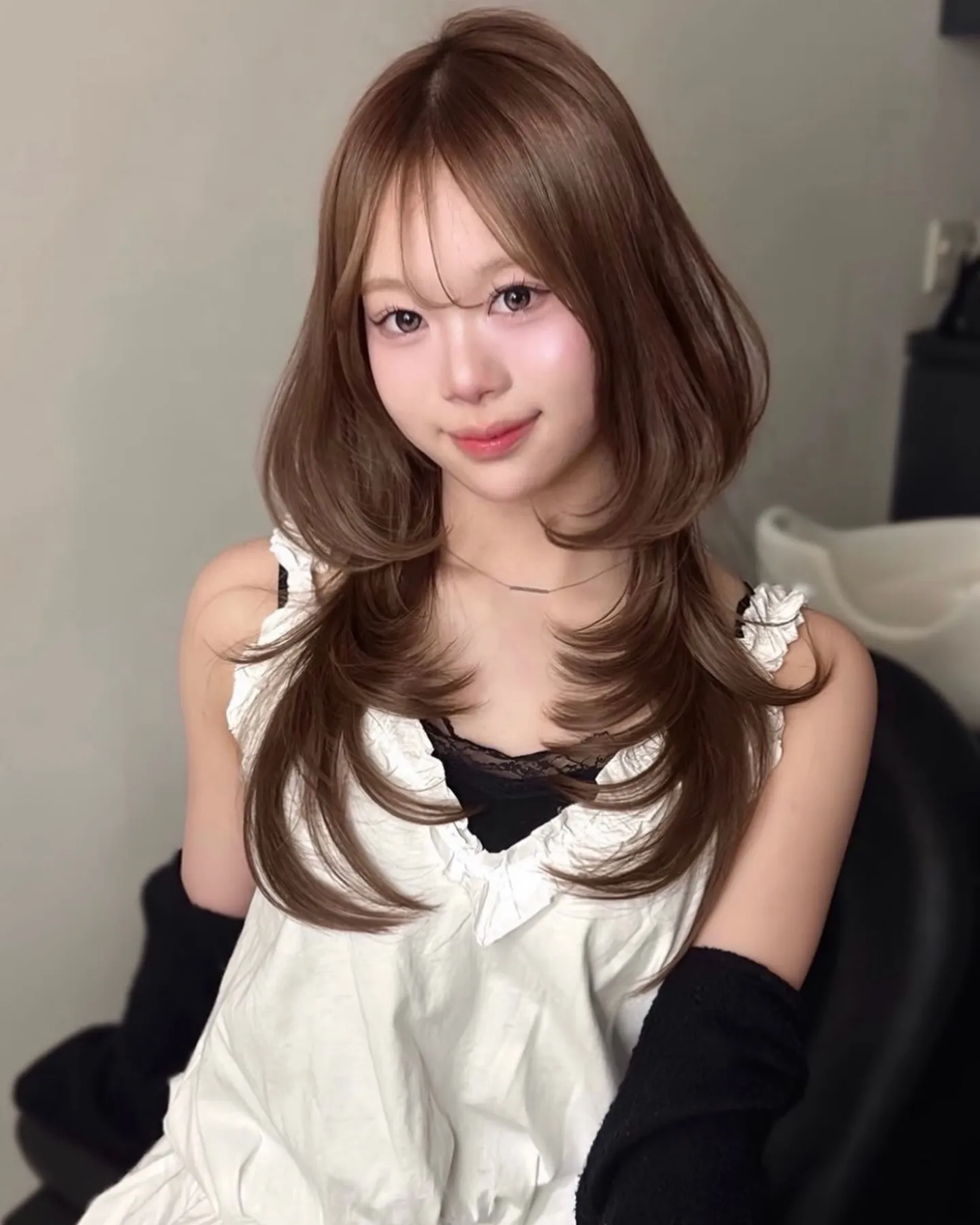 長めの前髪が2.3本あることで中顔面短縮の効果があります🩷